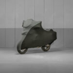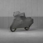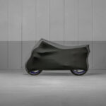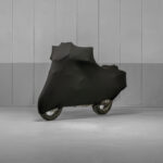 Pour retirer facilement la housse de votre moto, inversez simplement les étapes ci-dessus en repliant la housse sur le dessus et en l’enroulant afin de pouvoir la ranger dans son sac de transport.